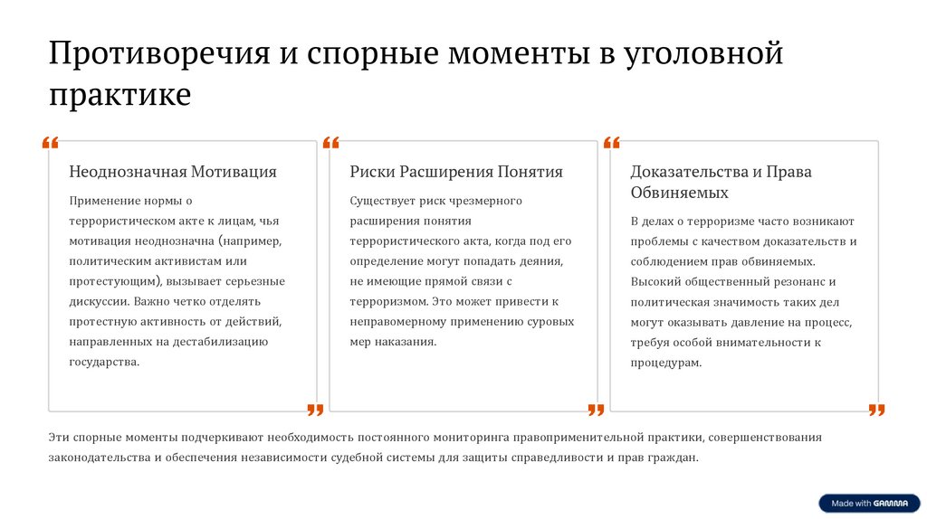 Эти спорные моменты подчеркивают необходимость постоянного мониторинга правоприменительной практики, совершенствования