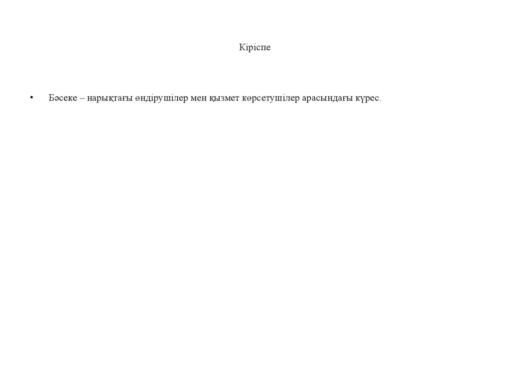 Бәсеке – нарықтағы өндірушілер мен қызмет көрсетушілер арасындағы күрес.