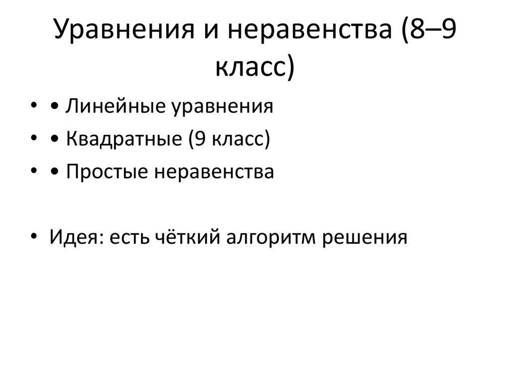 Уравнения и неравенства (8–9класс)