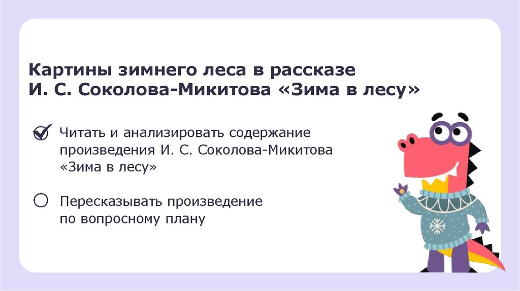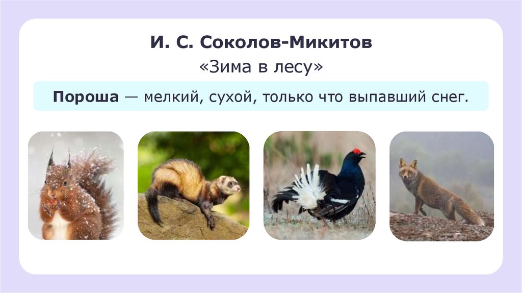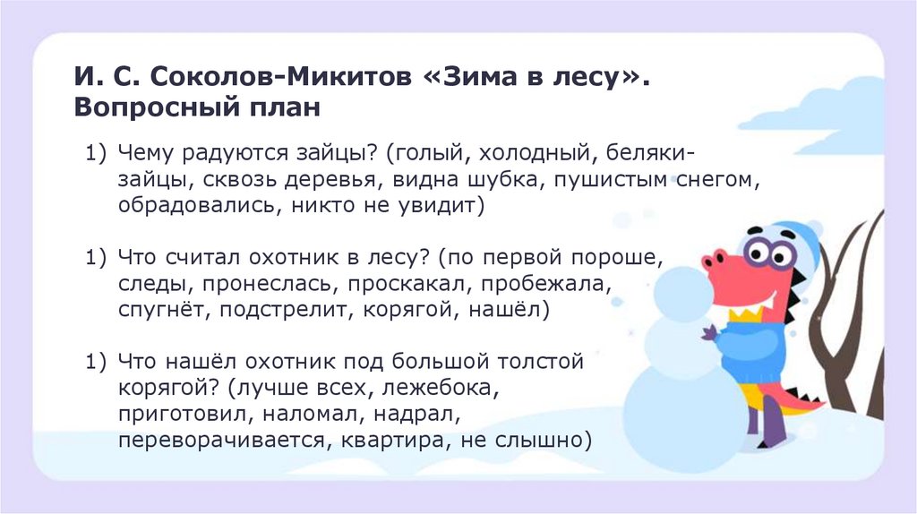 И. С. Соколов-Микитов «Зима в лесу».Вопросный план