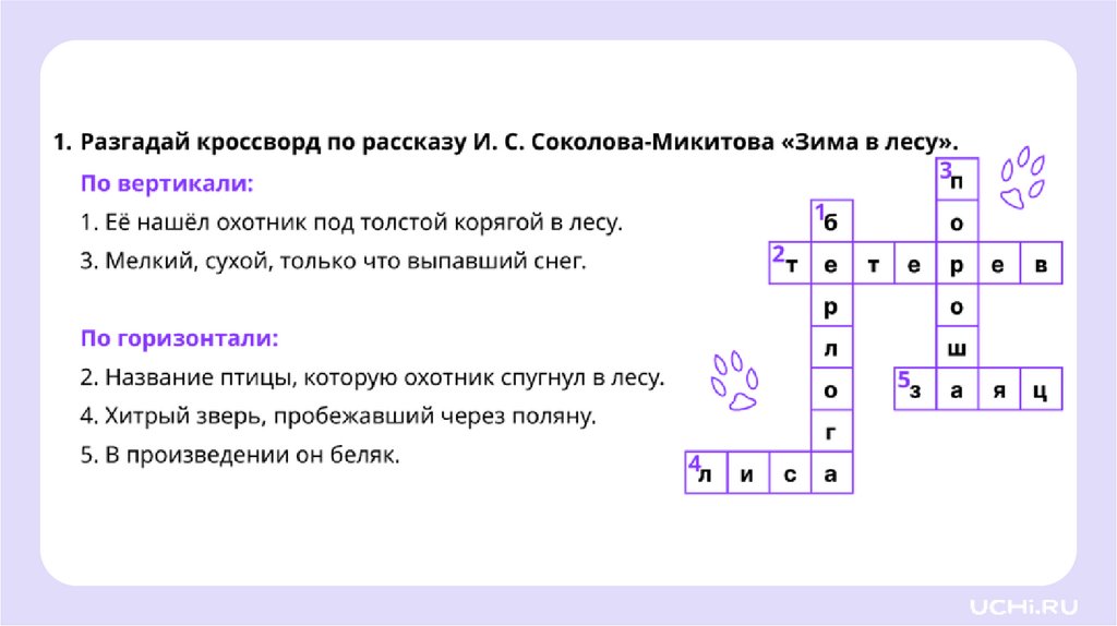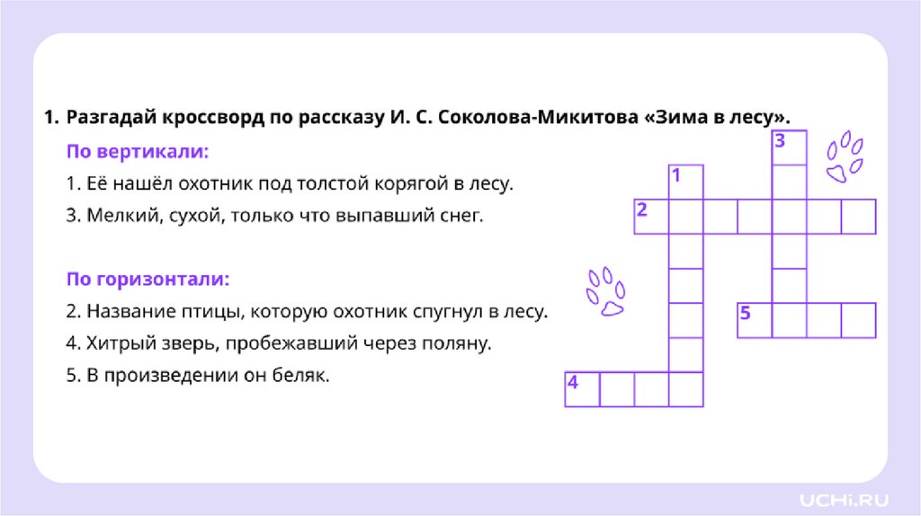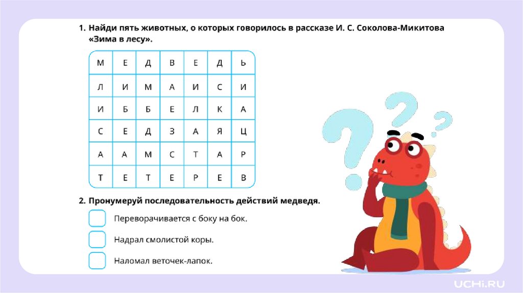 Составьте вопросный план по рассказуИ. С. Соколова-Микитова «Зима в лесу»