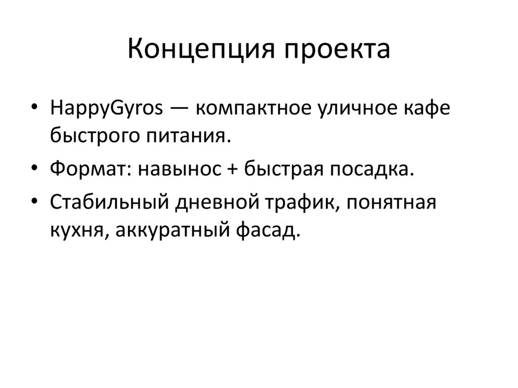 Концепция проекта• HappyGyros — компактное уличное кафе
