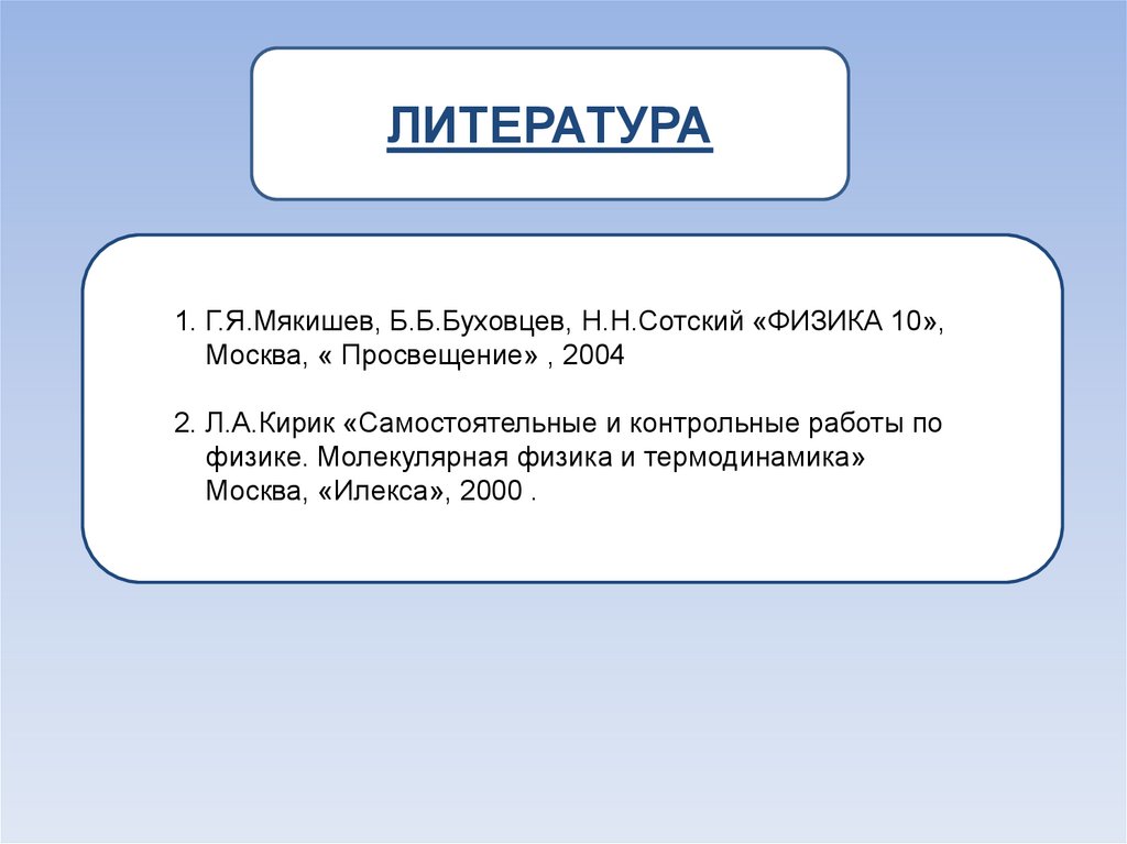 ЛИТЕРАТУРА1. Г.Я.Мякишев, Б.Б.Буховцев, Н.Н.Сотский «ФИЗИКА 10»,