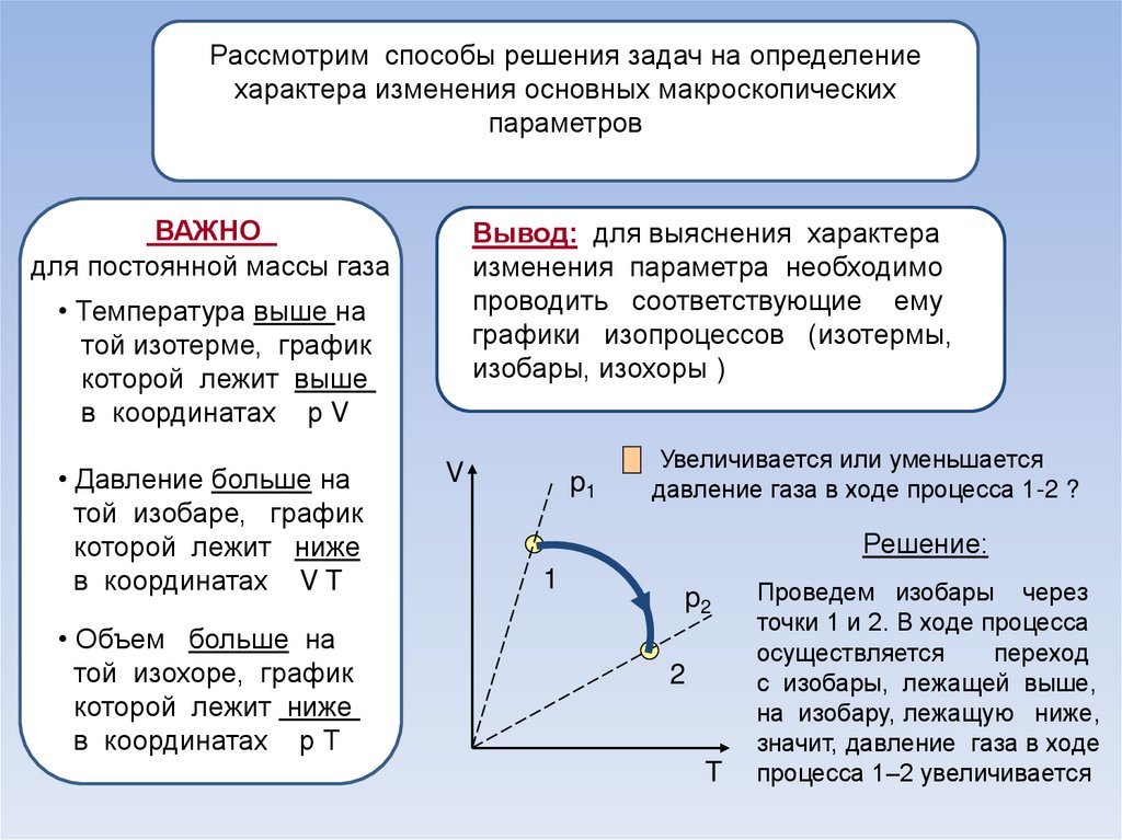 Рассмотрим способы решения задач на определениехарактера изменения основных макроскопических