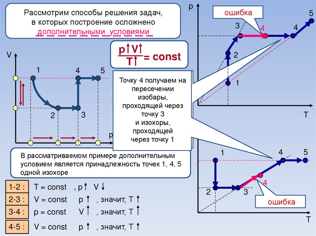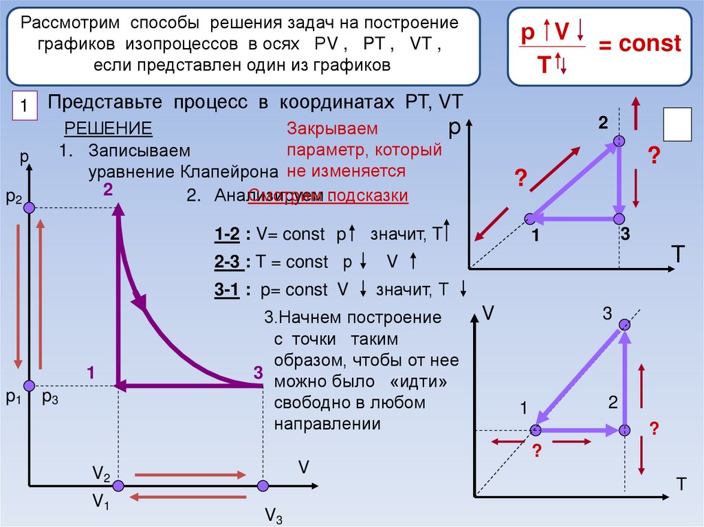 Рассмотрим способы решения задач на построениеграфиков изопроцессов в осях РV , PT , VT ,