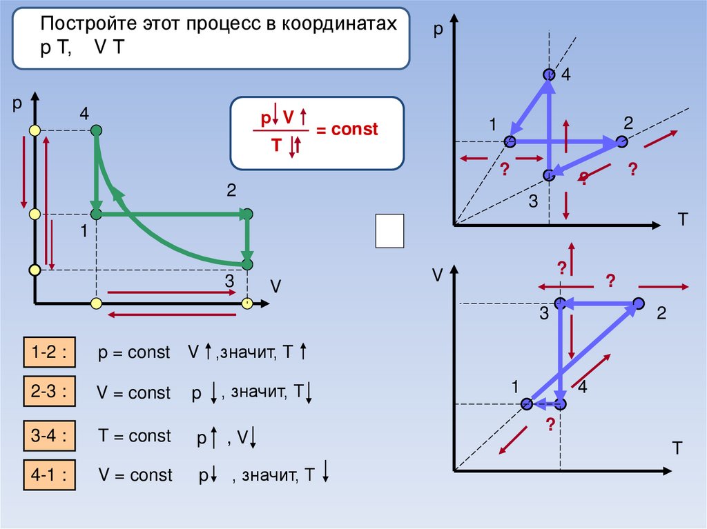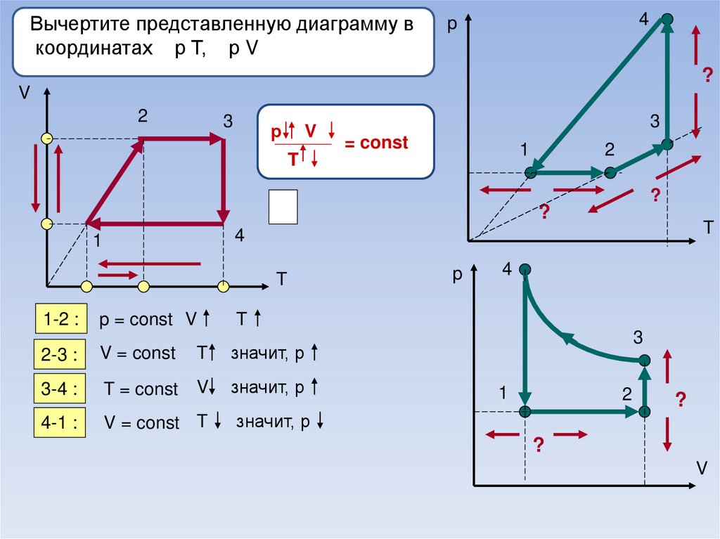 Вычертите представленную диаграмму вкоординатах р Т, р V