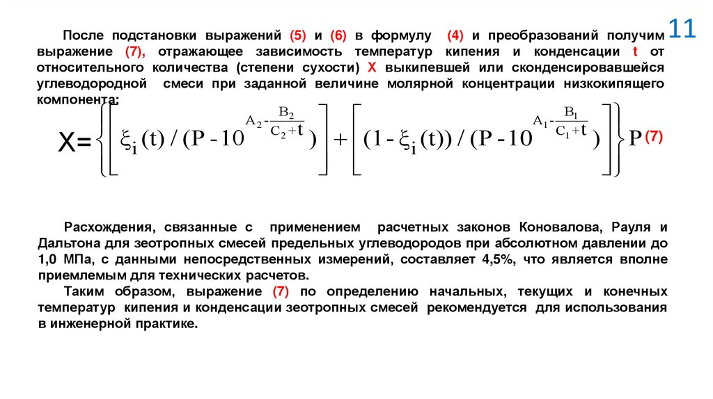 углеводородной зеотропной смеси и учитывающей влияние независимой переменной и