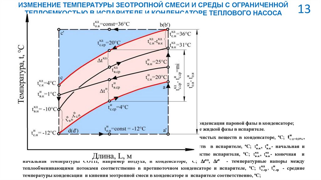 испарителей зеотропной смеси для нагрева и охлаждения сред с ограниченной