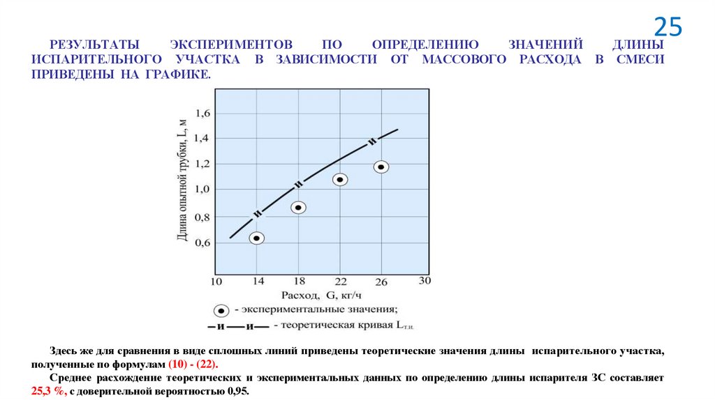 Здесь же для сравнения в виде сплошных линий приведены теоретические значения длины испарительного участка,