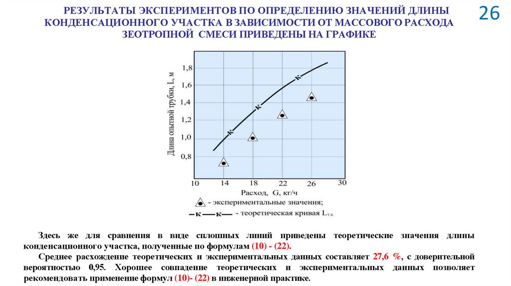 Среднее расхождение теоретических и экспериментальных данных составляет 27,6 %, с доверительной