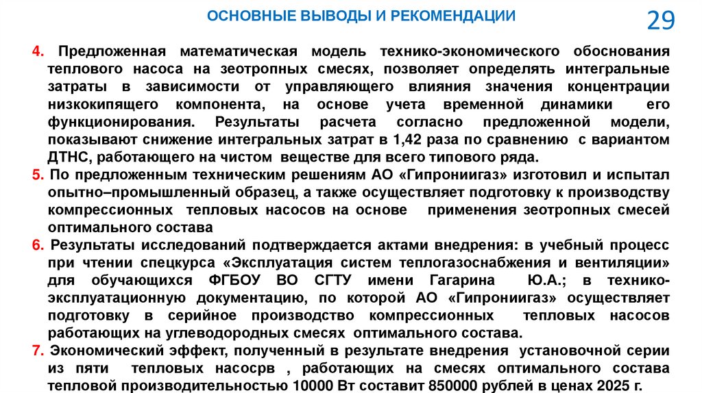 ОСНОВНЫЕ ВЫВОДЫ И РЕКОМЕНДАЦИИ29