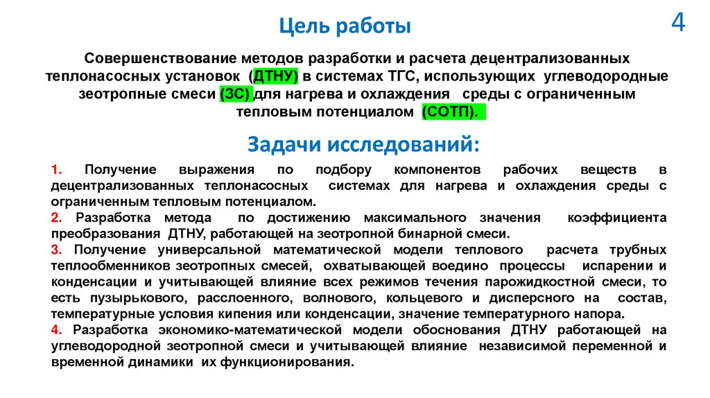 зеотропных смесей теплового насоса, впервые охватывающая воедино процессы