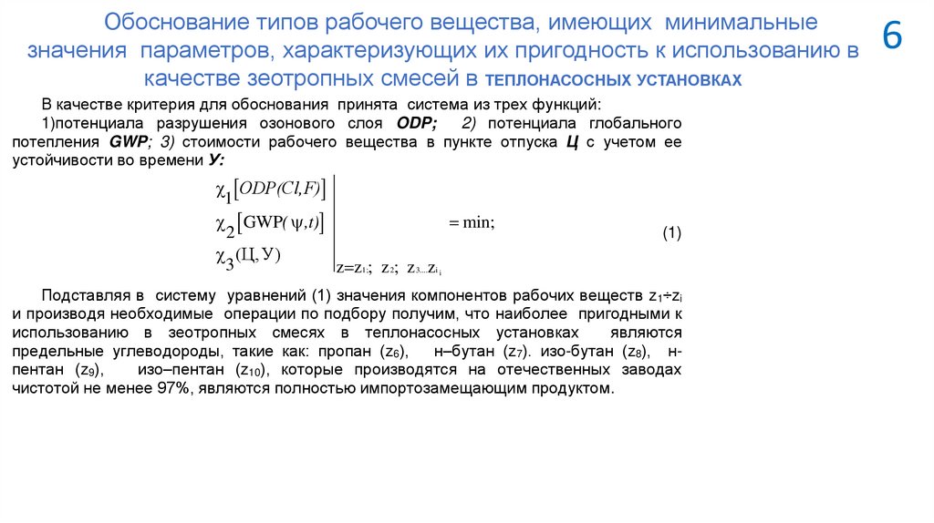 1. В настоящее время не разработаны методы по подбору компонентов рабочих веществв зависимости от потенциала повреждения озонового слоя, потенциала потепления