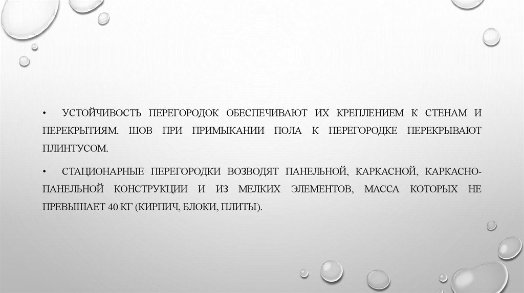 УСТОЙЧИВОСТЬ ПЕРЕГОРОДОК ОБЕСПЕЧИВАЮТ ИХ КРЕПЛЕНИЕМ К СТЕНАМ И