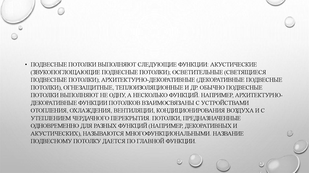 ПОДВЕСНОМУ ПОТОЛКУ ДАЕТСЯ ПО ГЛАВНОЙ ФУНКЦИИ.