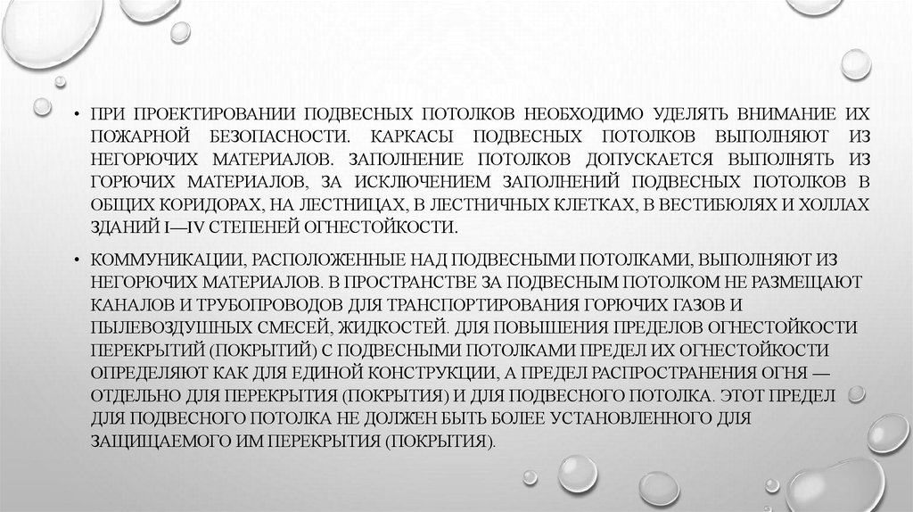 • ПРИ ПРОЕКТИРОВАНИИ ПОДВЕСНЫХ ПОТОЛКОВ НЕОБХОДИМО УДЕЛЯТЬ ВНИМАНИЕ ИХПОЖАРНОЙ БЕЗОПАСНОСТИ. КАРКАСЫ ПОДВЕСНЫХ ПОТОЛКОВ ВЫПОЛНЯЮТ ИЗ