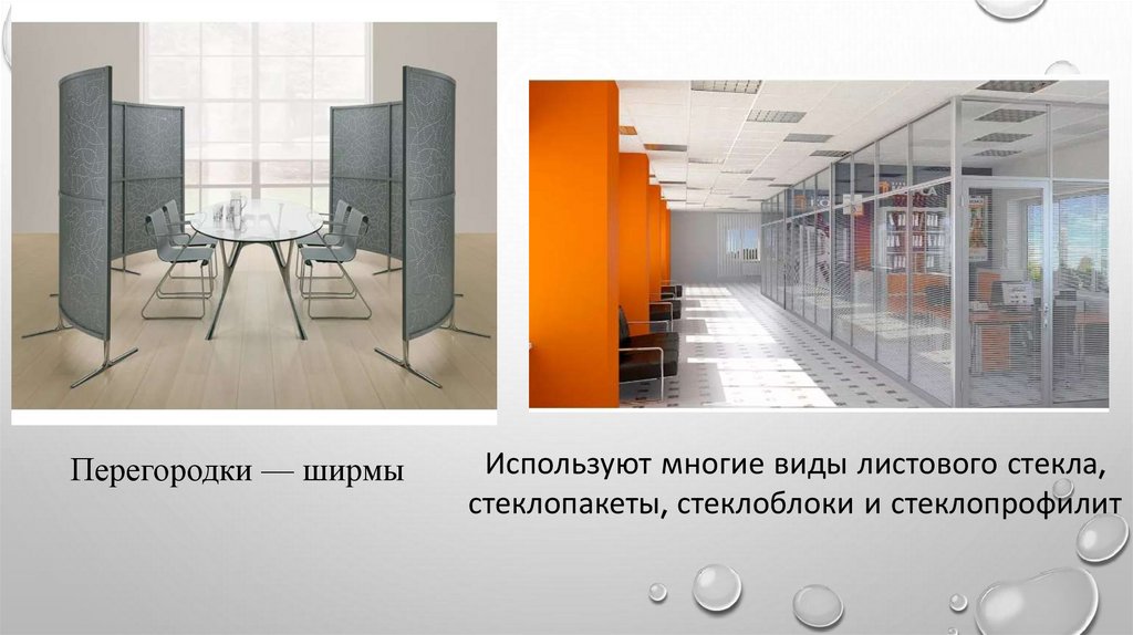 Перегородки — ширмыИспользуют многие виды листового стекла,