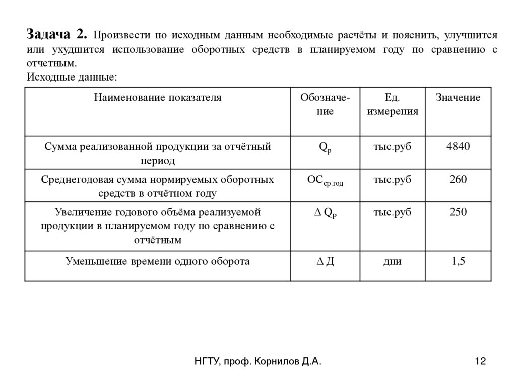тыс.Исходные данные: