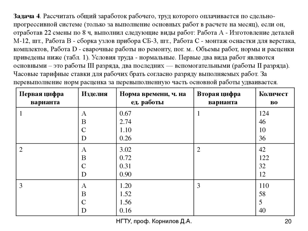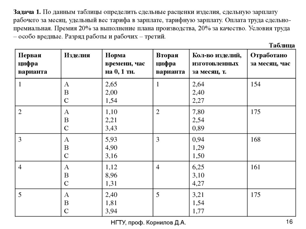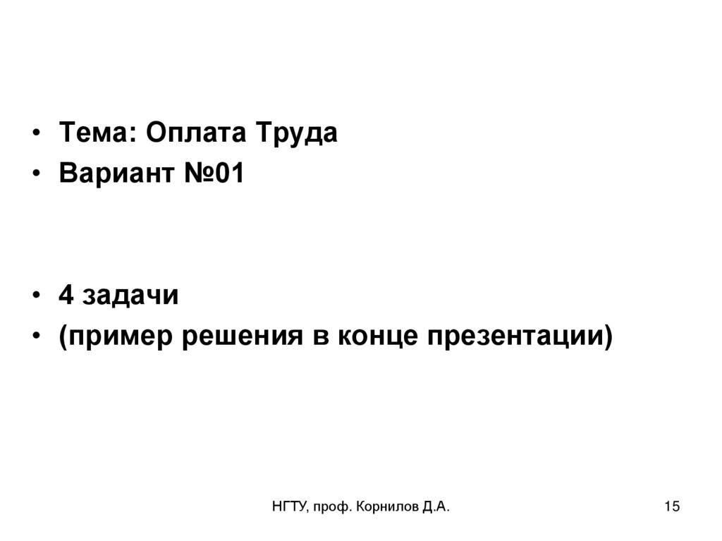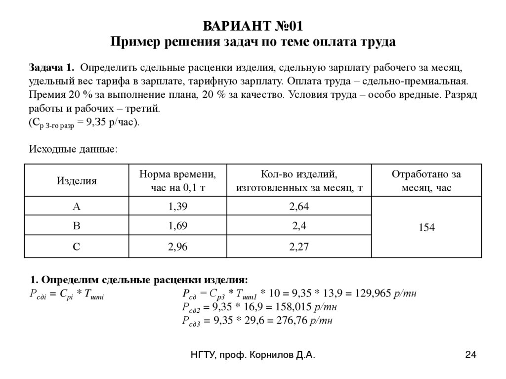 ВАРИАНТ №01Пример решения задач по теме оплата труда