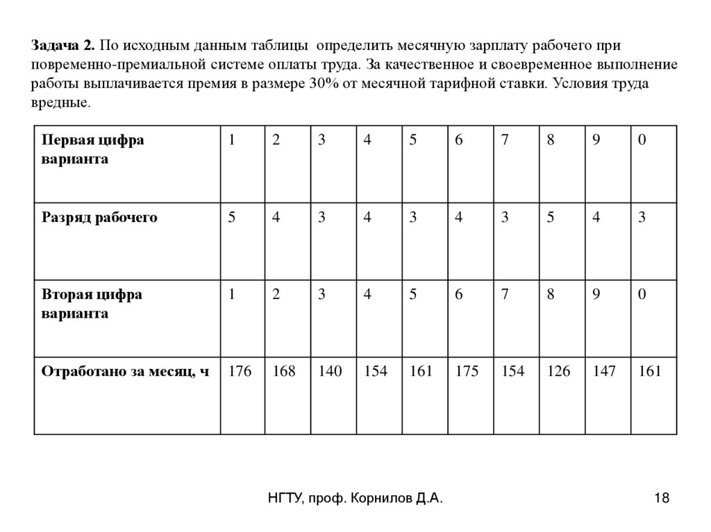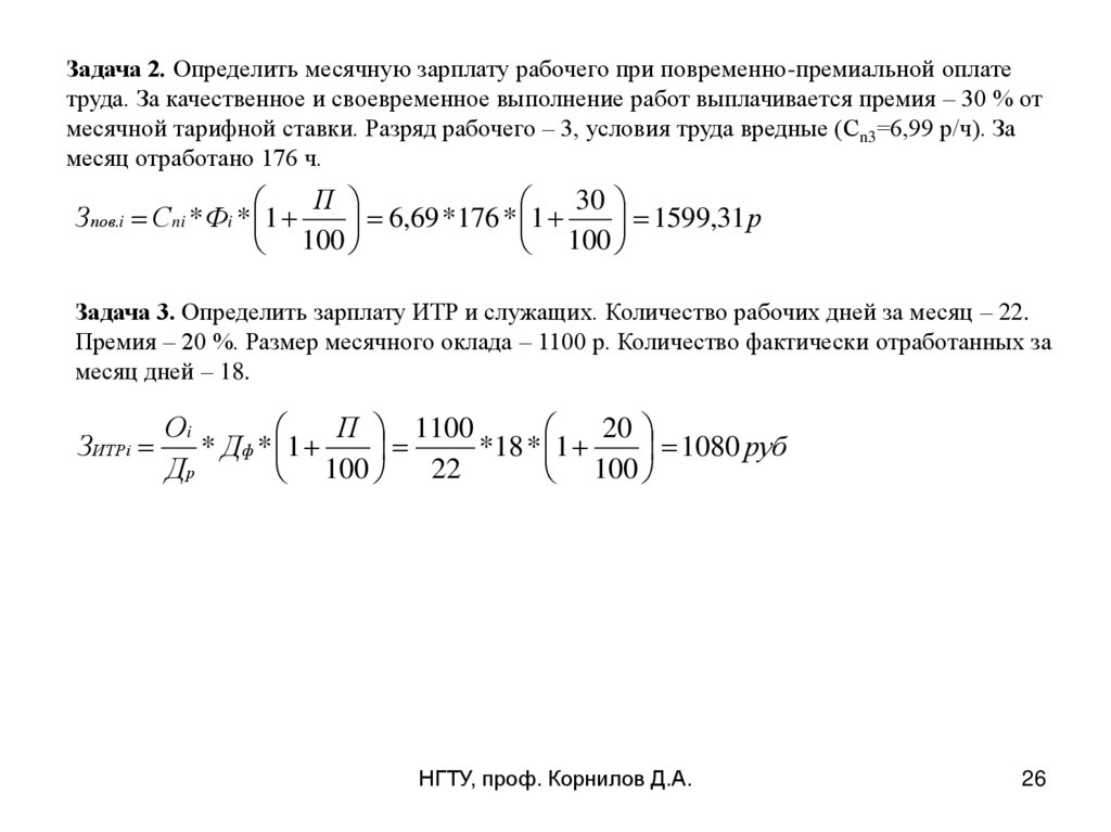 Задача 2. Определить месячную зарплату рабочего при повременно-премиальной оплатетруда. За качественное и своевременное выполнение работ выплачивается премия – 30 % от