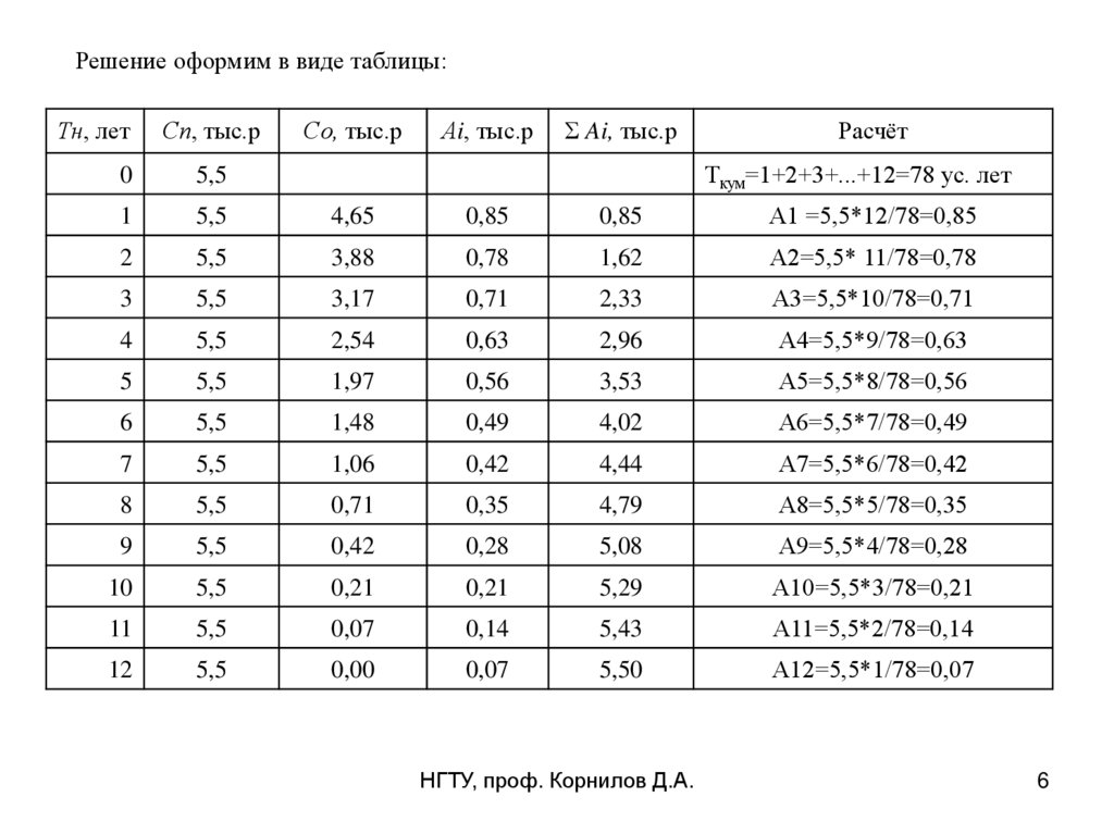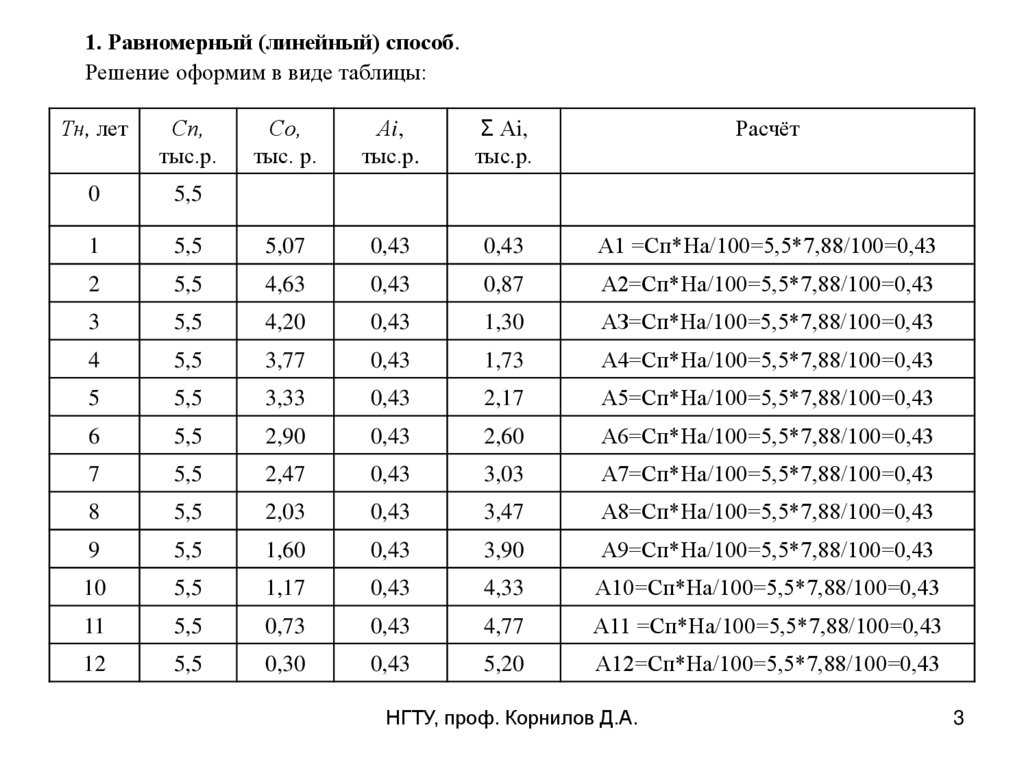 1. Равномерный (линейный) способ.Решение оформим в виде таблицы: