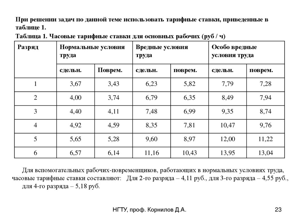 часовые тарифные ставки составляют: Для 2-го разряда – 4,11 руб., для 3-го разряда – 4,55 руб.,