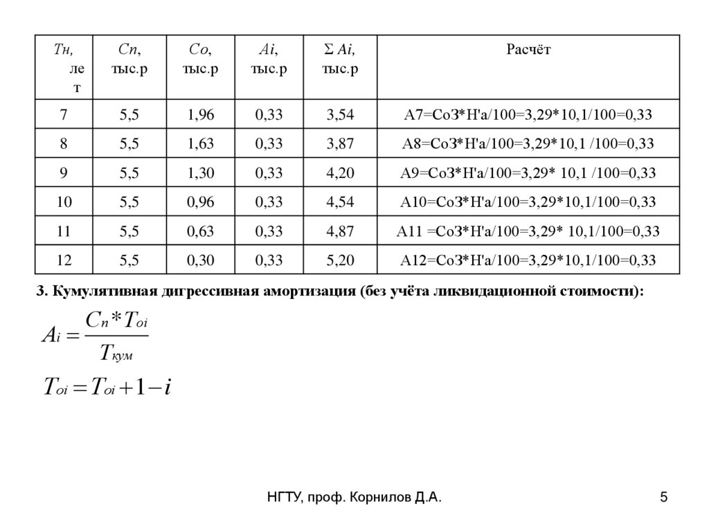 остальные года (Т'н = Тн - 3) по формуле: