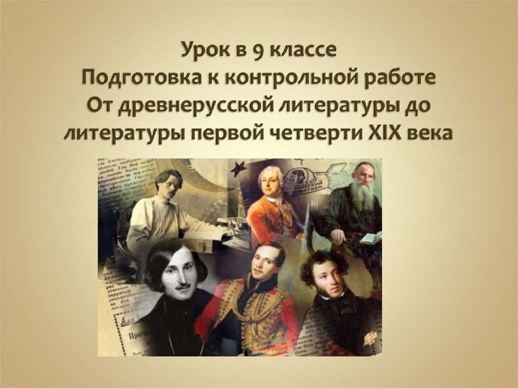 1. Урок в 9 классе Подготовка к контрольной работе От древнерусской литературы до литературы первой четверти XIX века