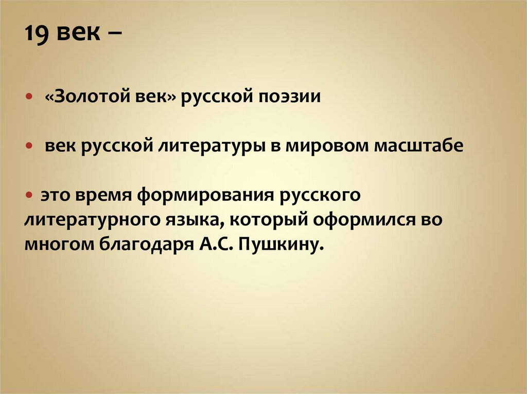 19 век –«Золотой век» русской поэзии