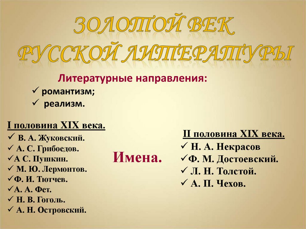8. Периоды русской литературы XIX века: