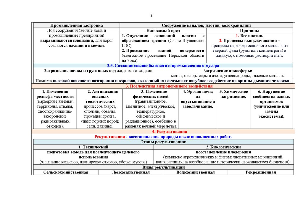 2. Виды антропогенного воздействия, изменяющего рельеф.