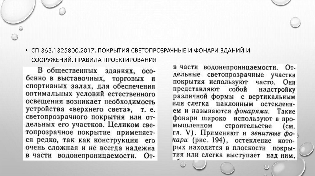 • СП 363.1325800.2017. ПОКРЫТИЯ СВЕТОПРОЗРАЧНЫЕ И ФОНАРИ ЗДАНИЙ ИСООРУЖЕНИЙ. ПРАВИЛА ПРОЕКТИРОВАНИЯ