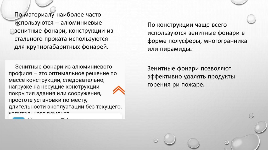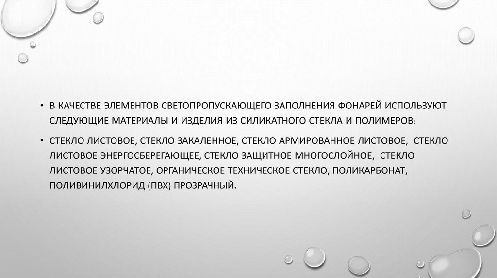 • В КАЧЕСТВЕ ЭЛЕМЕНТОВ СВЕТОПРОПУСКАЮЩЕГО ЗАПОЛНЕНИЯ ФОНАРЕЙ ИСПОЛЬЗУЮТСЛЕДУЮЩИЕ МАТЕРИАЛЫ И ИЗДЕЛИЯ ИЗ СИЛИКАТНОГО СТЕКЛА И ПОЛИМЕРОВ:
