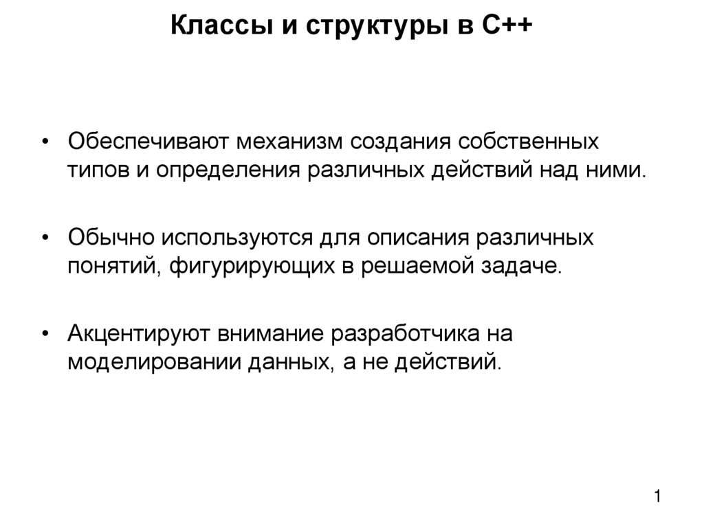 Классы и структуры в C++• Обеспечивают механизм создания собственных