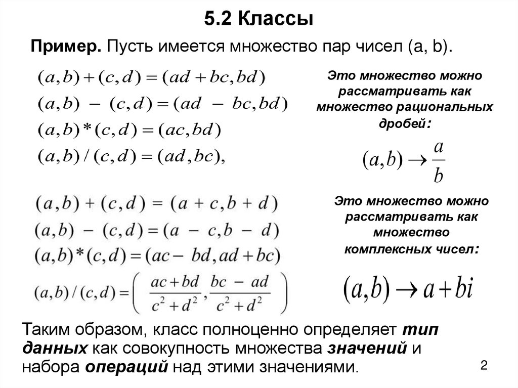 5.2 КлассыПример. Пусть имеется множество пар чисел (a, b).