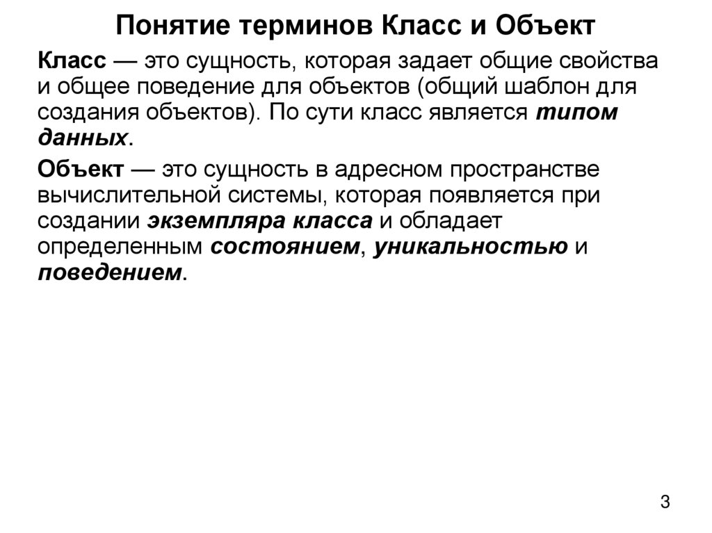 Понятие терминов Класс и ОбъектКласс — это сущность, которая задает общие свойства