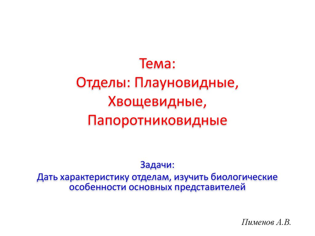 1. Тема: Отделы: Плауновидные, Хвощевидные, Папоротниковидные
