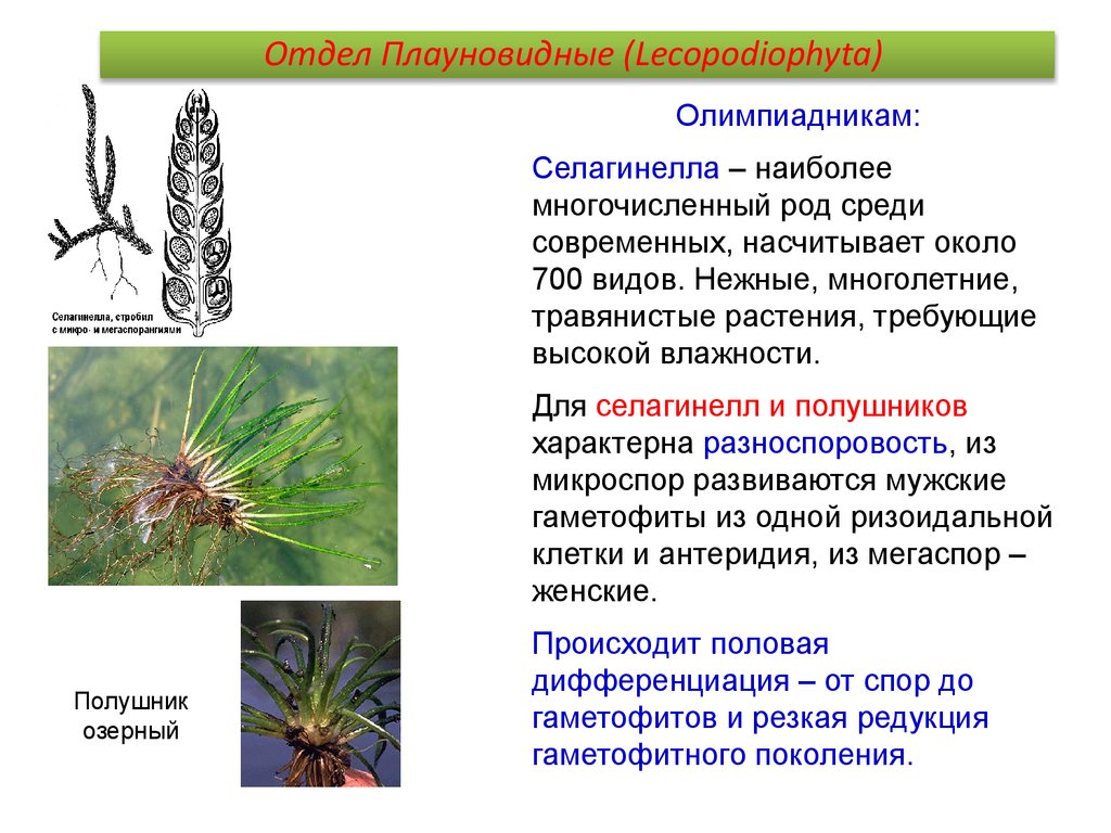 Отдел Плауновидные (Lecopodiophyta)Олимпиадникам: