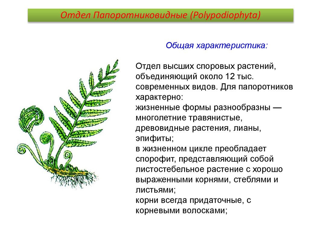 Отдел Папоротниковидные (Polypodiophyta)В основном папоротники —
