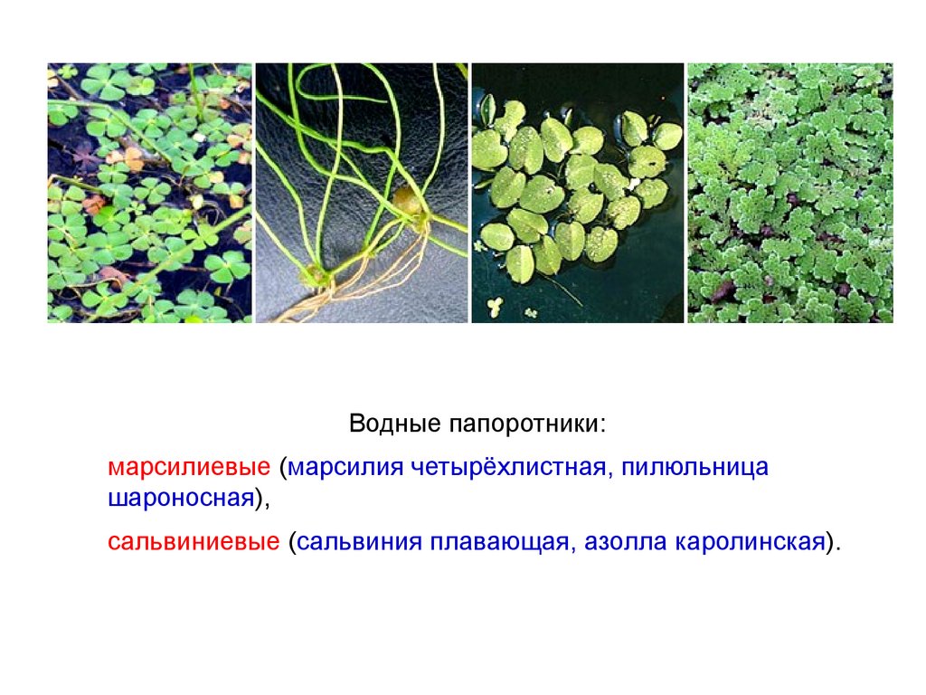 сальвиниевые (сальвиния плавающая, азолла каролинская).