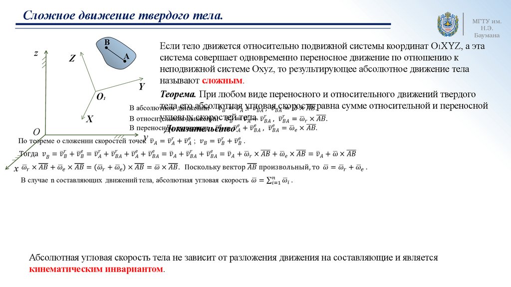 неподвижной системе Oxyz, то результирующее абсолютное движение тела
