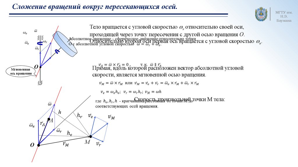 Сложение вращений вокруг пересекающихся осей.Тело вращается с угловой скоростью r относительно своей оси,
