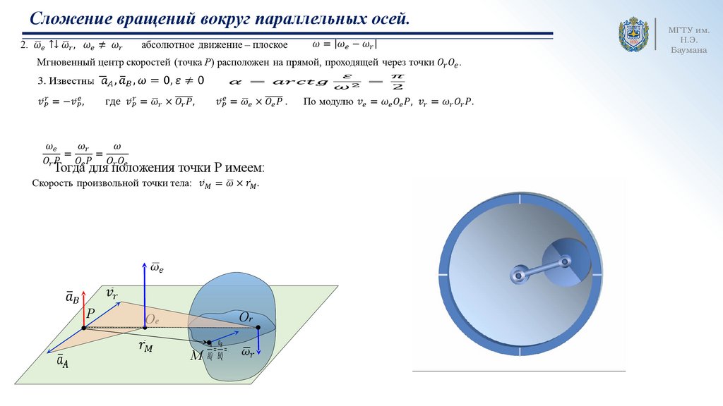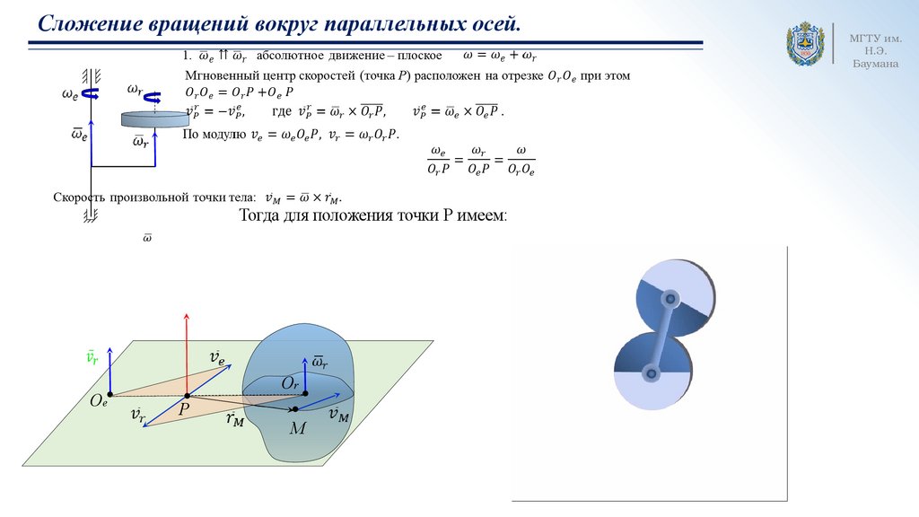 Сложение вращений вокруг параллельных осей.Тогда для положения точки P имеем: