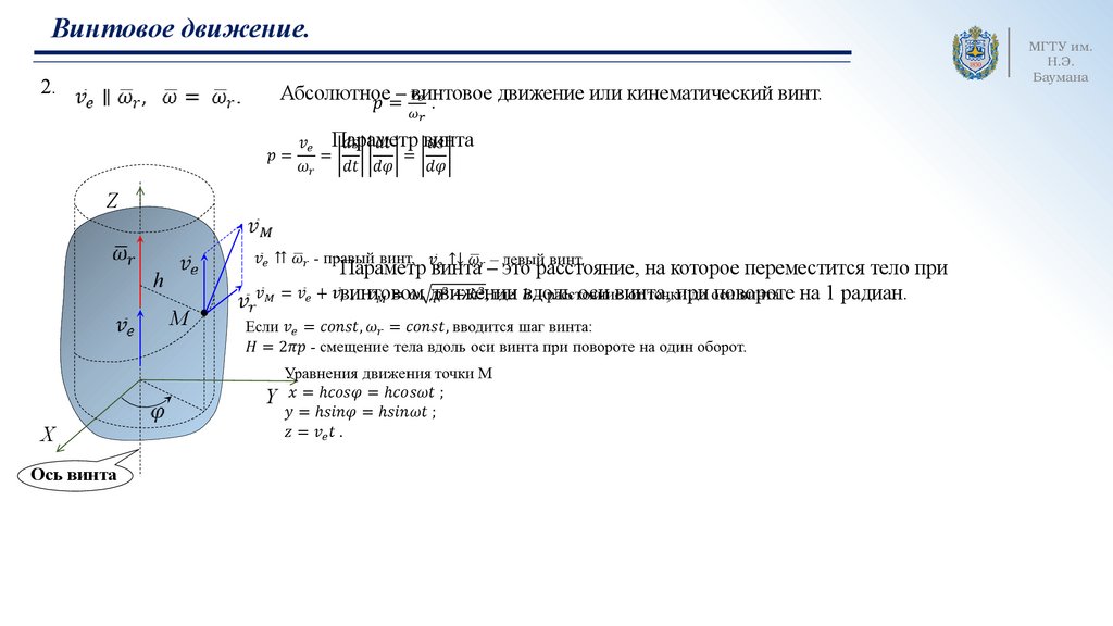 винтовом движении вдоль оси винта, при повороте на 1 радиан.