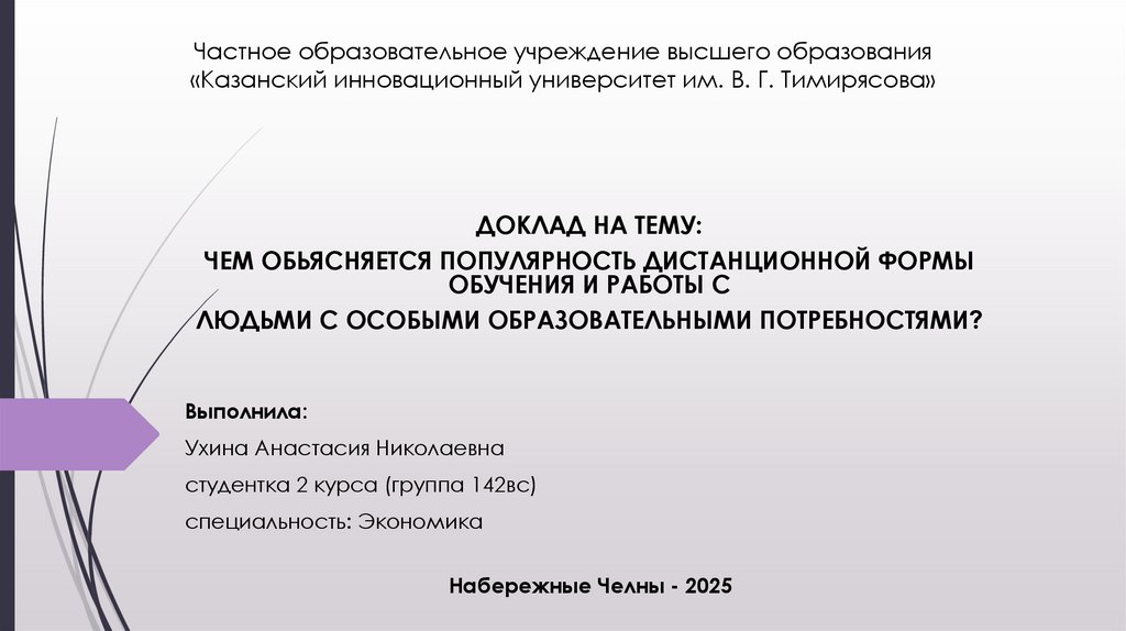 1. Частное образовательное учреждение высшего образования «Казанский инновационный университет им. В. Г. Тимирясова»