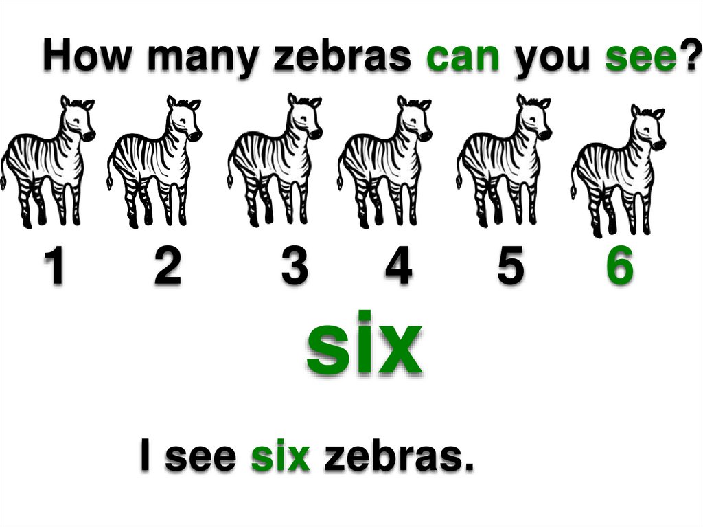 I see six zebras.