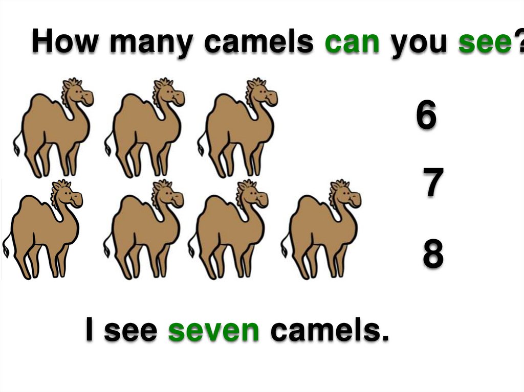 I see seven camels.