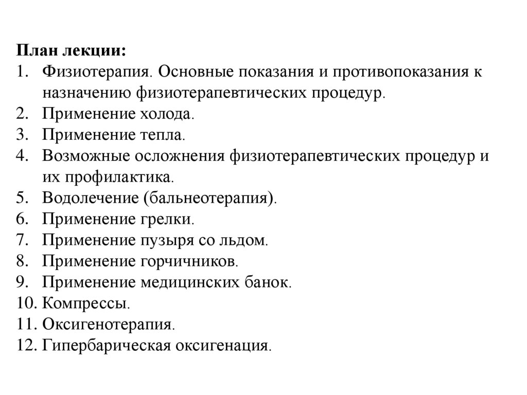 План лекции:1. Физиотерапия. Основные показания и противопоказания к