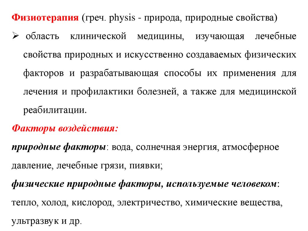 Физиотерапия (греч. physis - природа, природные свойства)область