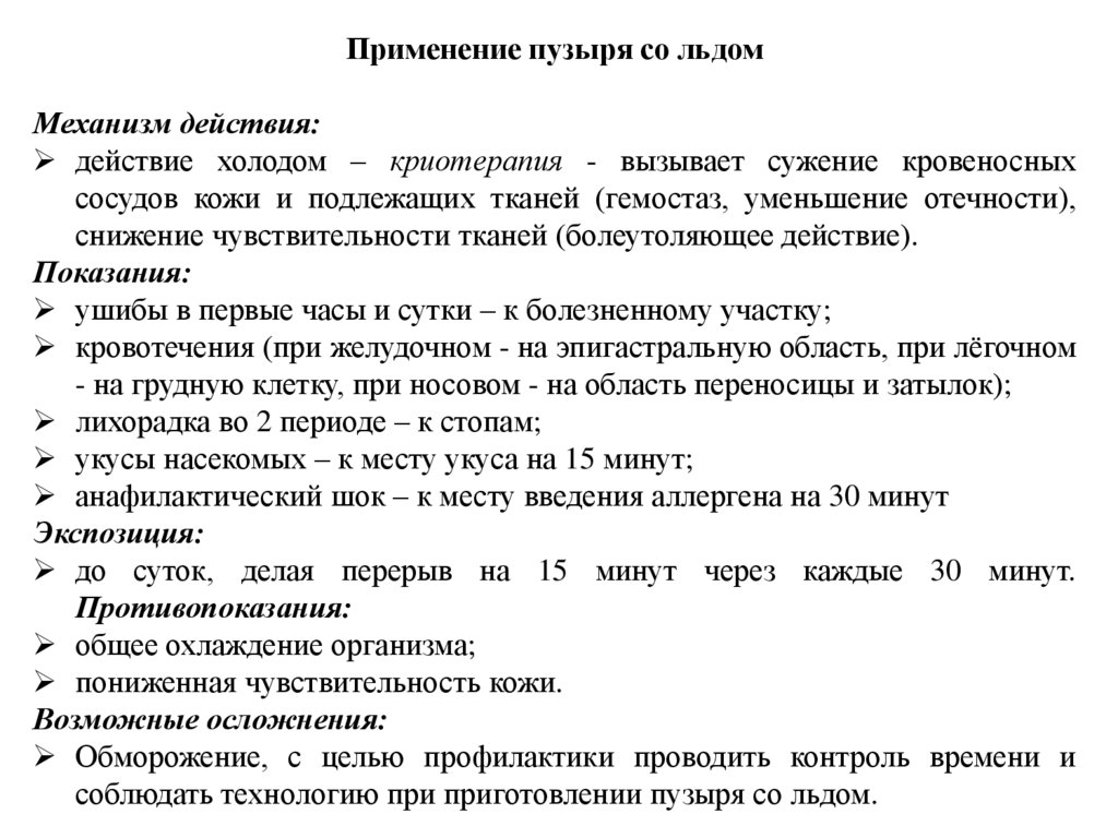 13. Расскажите о показаниях и противопоказаниях к применению пузыря со льдом.